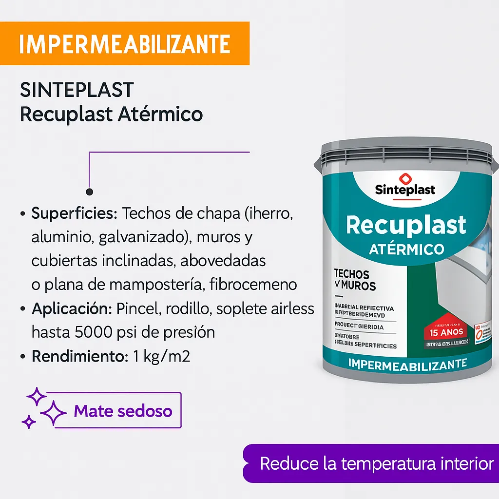 Recuplast Atermico Membrana Impermeabilizante 20kg Acabado Mate Color Blanco
